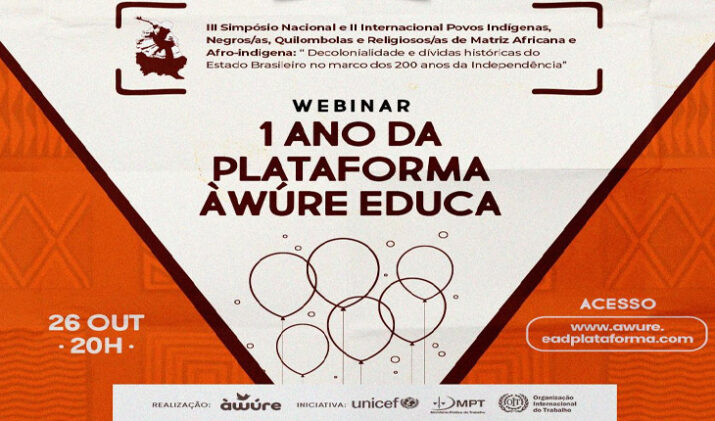 Para comemorar 1 ano de existência da Plataforma Àwúre Educa, dia 26 de outubro, às 20h será realizado o Webinar “Um ano da Plataforma Àwúre Educa – A importância da educação inclusiva”. O evento online funcionará como uma roda de conversa falando como a Plataforma Àwúre Educa vem promovendo a educação para as Relações Étnicos-raciais,…
