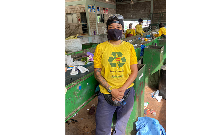 As adversidades fazem parte dessa classe e muitos catadores permaneceram na ativa durante a pandemia. Outros tiveram seu primeiro contato com a reciclagem durante esse período. Emily tem 21 anos e um filho de um ano e seis meses. Desempregada, LGBTQI+ e com depressão, encontrou trabalho na cooperativa e foi aceita mesmo revelando que ainda sofria e que a qualquer momento poderia vir a ter uma crise. “Eu não estava bem, fui embora da minha cidade, larguei tudo, larguei meu serviço. Aí vim aqui pra Brasília. Estava muito difícil para conseguir algum serviço. Um amigo meu falou sobre a Recicla, falou sobre as oportunidades que eles ofereciam. No momento que cheguei, demorou cinco dias eu fui chamada, fiz a entrevista, falei o que estava acontecendo comigo que não estava bem, mesmo assim eles me acolheram.”