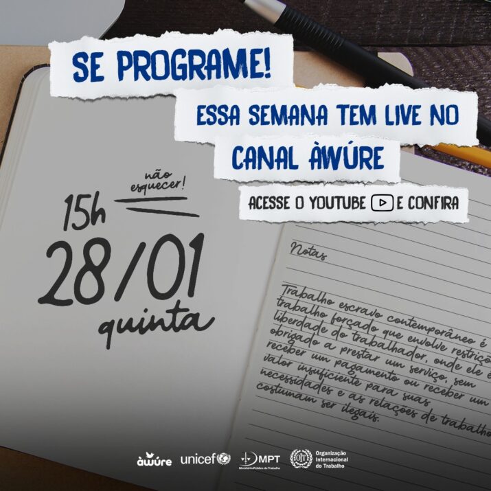 No dia Nacional de Combate ao Trabalho Escravo, 28 de janeiro, o Canal Àwúre, que faz parte do Àwúre, projeto do Ministério Público do Trabalho (MPT), da Organização internacional do Trabalho(OIT) e do Fundo das Nações Unidas para a Infância(UNICEF), trouxe para a primeira live de 2021 os números e formas de ajudar a combater…