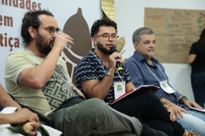 O coordenador de Políticas e Programas da ActionAid Brasil, Junior Aleixo, participou de uma das mesas de debate, falando sobre o avanço do agronegócio sobre as áreas coletivas dos povos tradicionais Foto: Matheus Damascena / Divulgação ActionAid